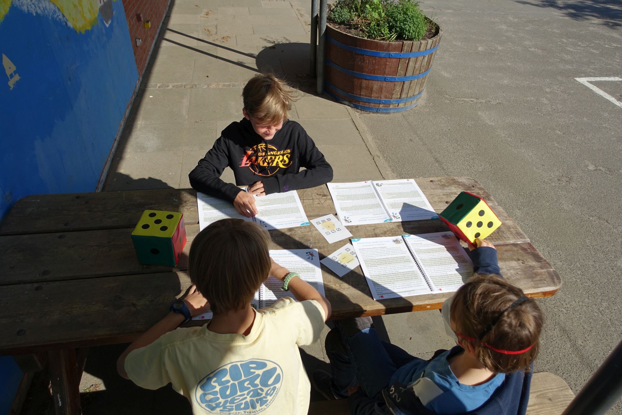 Zur Etablierung einer Leseroutine haben wir im Schuljahr 2024/25 die regelmäßige Lesezeit eingeführt. An drei Tagen in der Woche werden in 20-minütigen Einheiten durch lautes, z.T. chorisches Vorlesen sowohl Leseflüssigkeit und gestaltendes Lesen als auch Konzentration und Ausdauer trainiert.